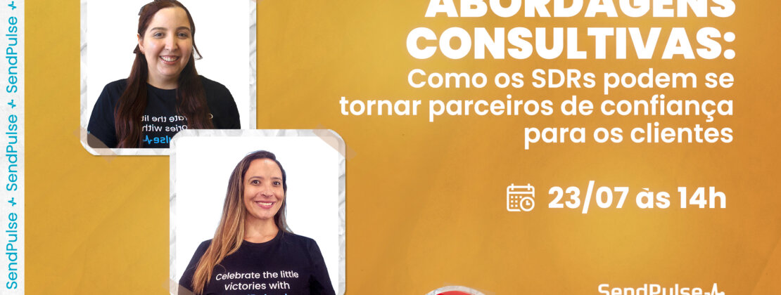 A SendPulse promoveu mais um evento online imperdível para compartilhar conteúdos valiosos sobre estratégias de vendas e marketing. Dessa vez, conversamos sobre como o SDR pode se tornar um elo de confiança entre a sua empresa e os clientes. Descubra os assuntos que você vai encontrar no webinar a seguir: