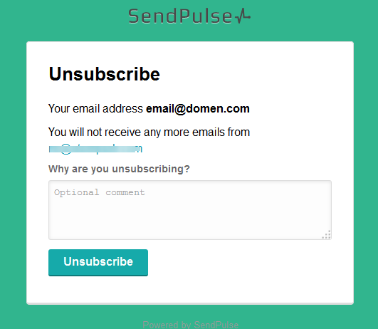 Este é um exemplo de uma página de cancelamento de inscrição que foi criada.