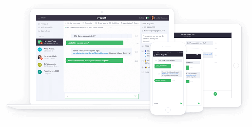 Outro ponto importante sobre o JivoChat é a função com WhatsApp, permitindo uma comunicação mais rápida e instantânea. Assim, as respostas instantâneas são programadas para tirar dúvidas frequentes e atalhos no teclado para ajudar a diminuir o tempo de atendimento.