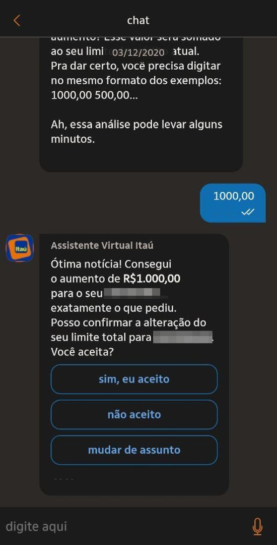 O assistente virtual Alaor do banco Itaú oferece um serviço de bot de 24 horas por dia, sendo possível pedir inúmeras informações e ajuda para o mesmo independente do horário de funcionamento do banco.