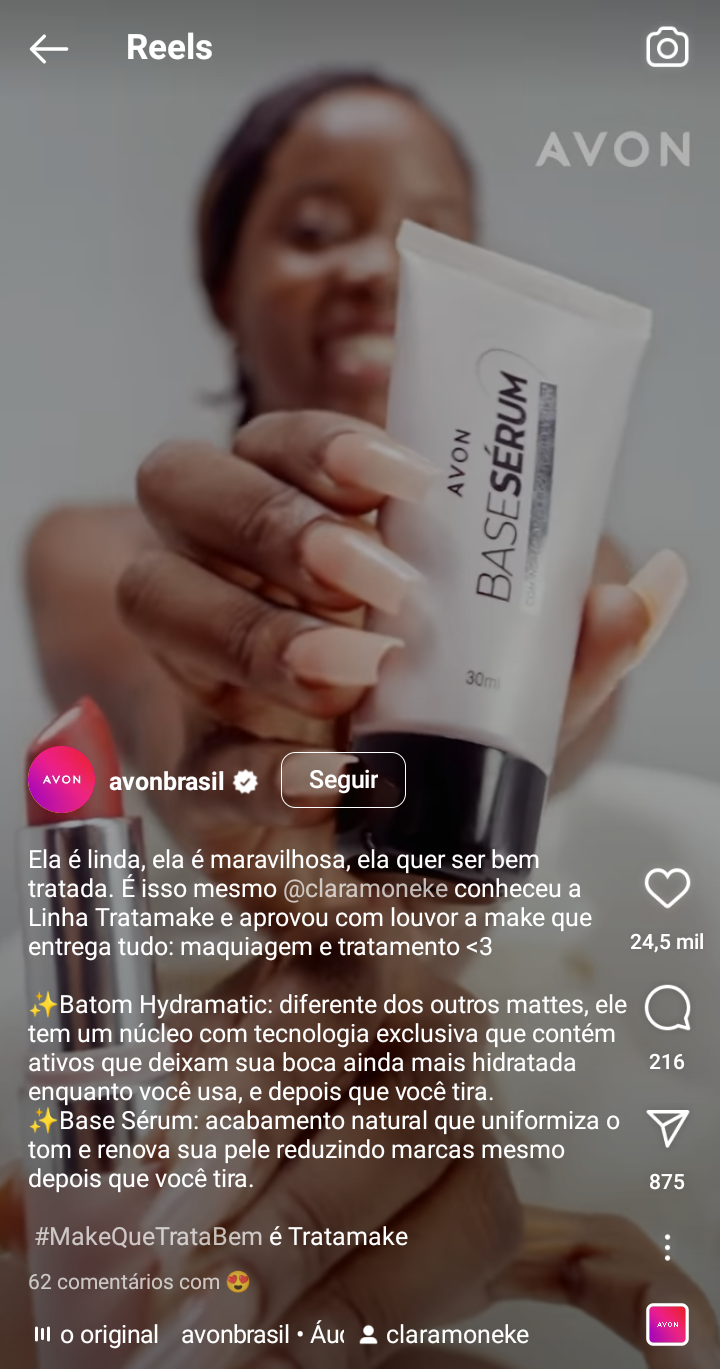 A Avon, por exemplo, fez uma campanha de apresentação de sua linha Tratamake com um vídeo curto da atriz Clara Moneke.