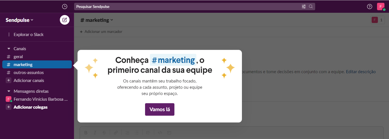 A Slack, por exemplo, oferece um tour explicativo de sua plataforma para guiar o usuário em seus passos iniciais.