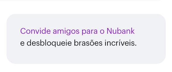 Crie um programa de indicações que recompense os clientes que recomendarem seus produtos ou serviços para outras pessoas. O Nubank faz isso para estimular que seus usuários convidem amigos, recompensando-os com “brasões” que levam a recompensas e oportunidades exclusivas.