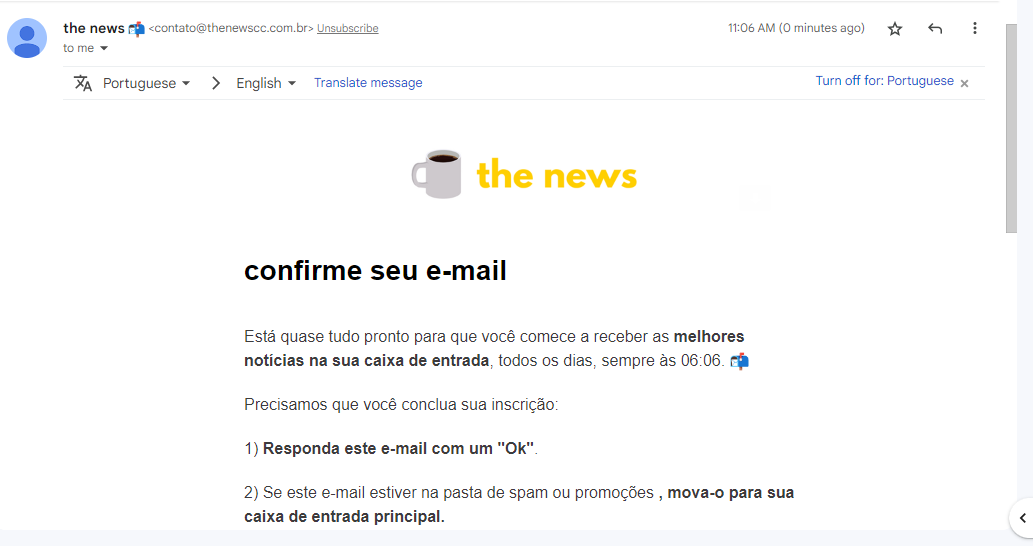 Imediatamente, eles recebem um e-mail de confirmação. A marca pede-lhes que sigam o link caso queiram subscrever ou apaguem o e-mail caso este tenha sido recebido por engano.