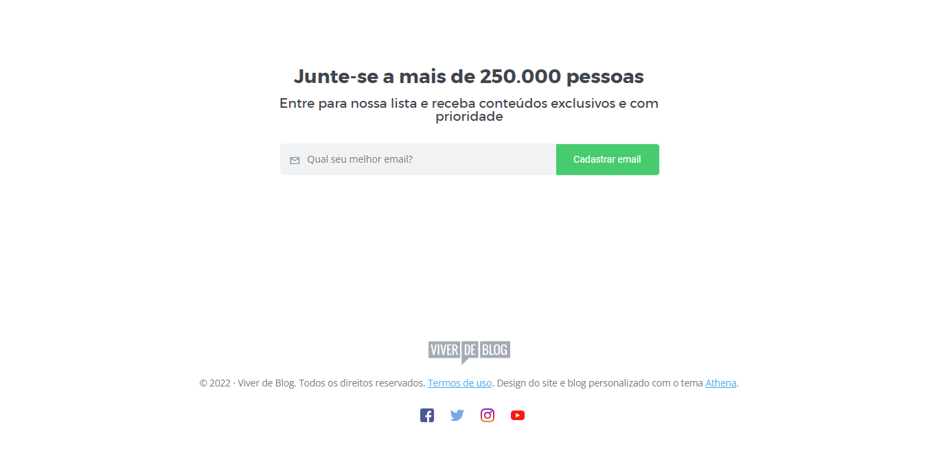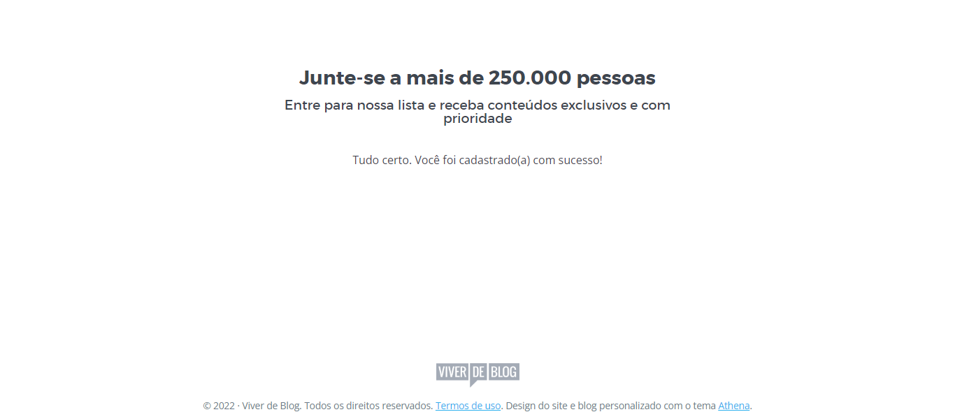 Single opt-in significa que um usuário ingressa na sua lista logo após fornecer seu endereço de e-mail e clicar em “Inscrever-se”. Portanto, este é um processo de uma etapa que não exige que os usuários acessem a caixa de entrada para confirmar sua assinatura.