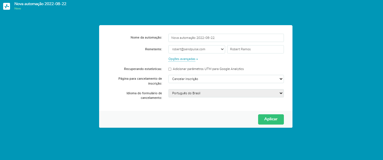 Volte para a guia “Automações” e escolha “Criar nova automação”. Preencha o formulário com as informações necessárias para enviar sua nova campanha de gotejamento.