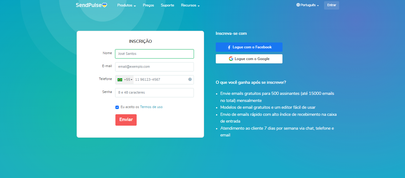 1. Crie uma conta na SendPulse