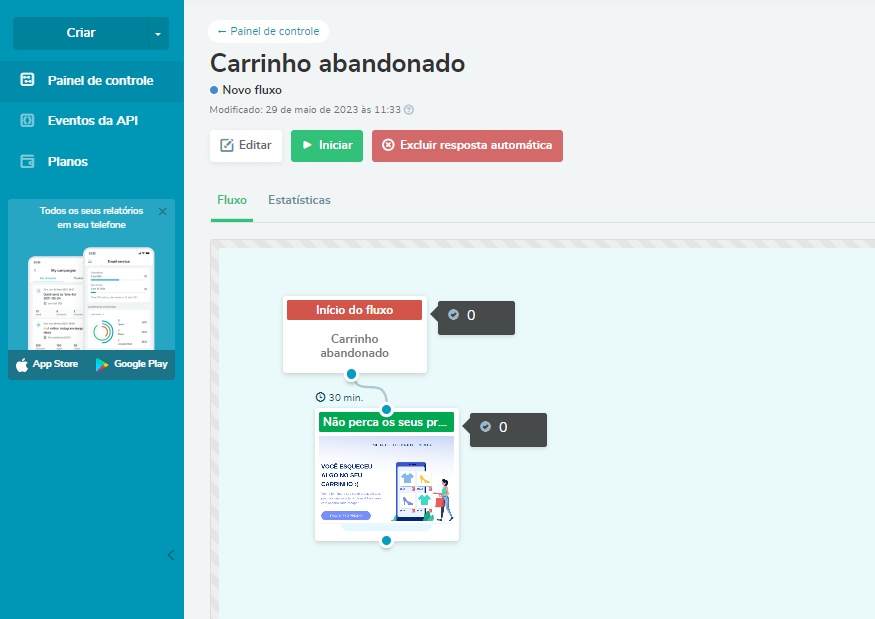 Abaixo você pode ver como é fácil criar um fluxo usando um modelo de carrinho abandonado existente.