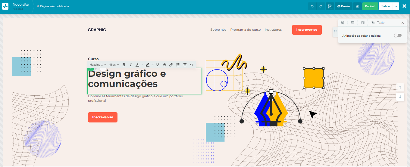 O editor intuitivo de arrastar e soltar garante um processo criativo dinâmico, sem a necessidade de que você possua conhecimentos em programação. Há também uma biblioteca de templates pré-projetados para servir de ponto de partida.