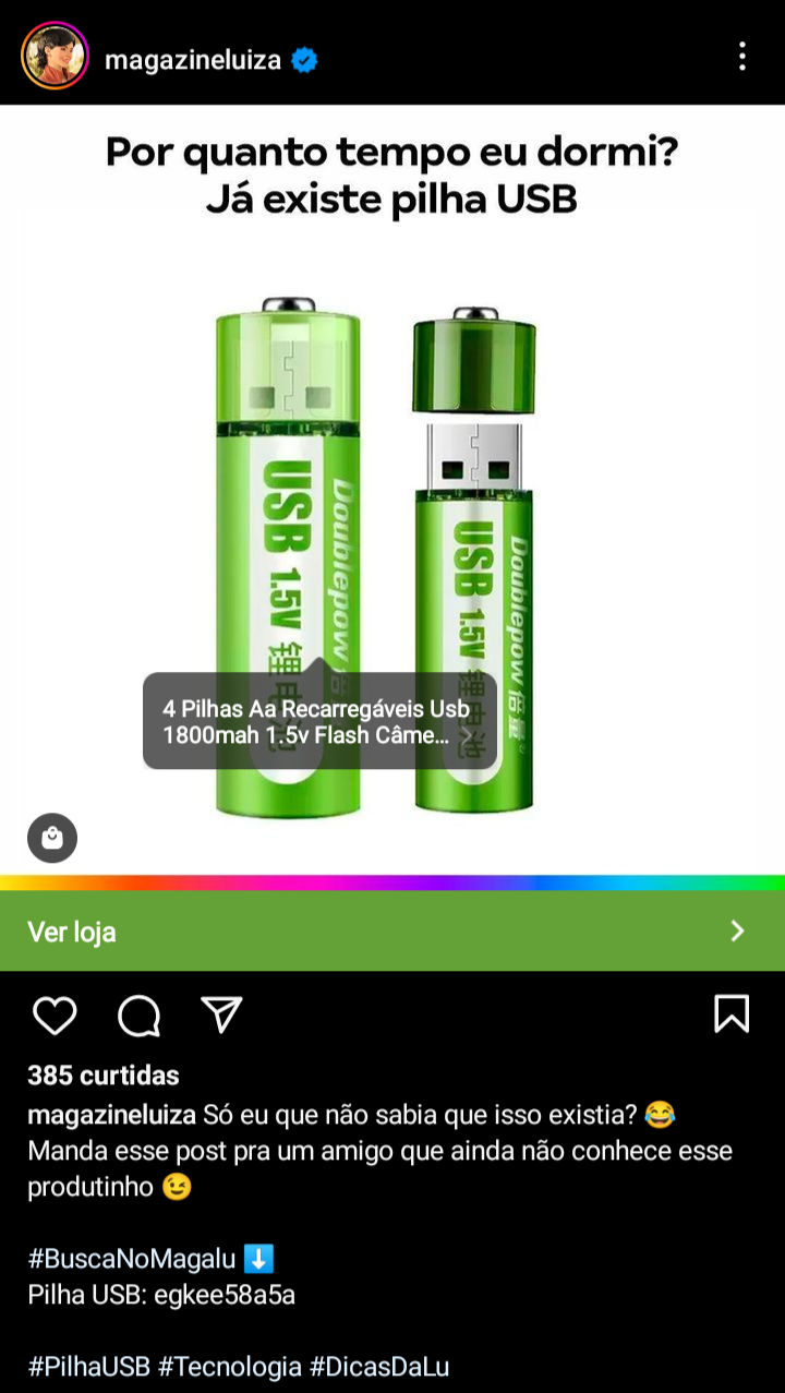 Abaixo, você pode ver um exemplo de como a empresa Magazine Luiza informa os leads sobre um produto inovador que é oferecido em sua loja virtual.