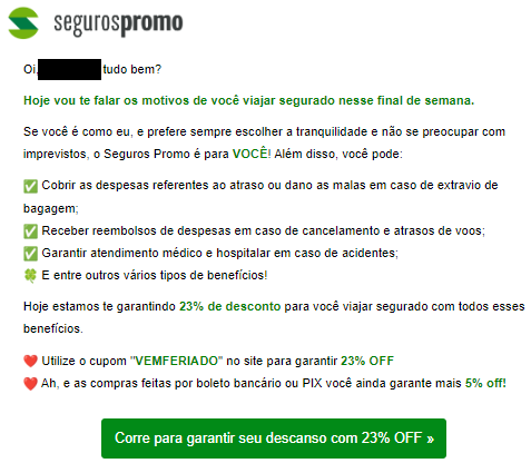 Por exemplo, a Seguros Promo oferece, aos clientes que já utilizaram serviços da empresa, ofertas personalizadas com descontos via cupom.
