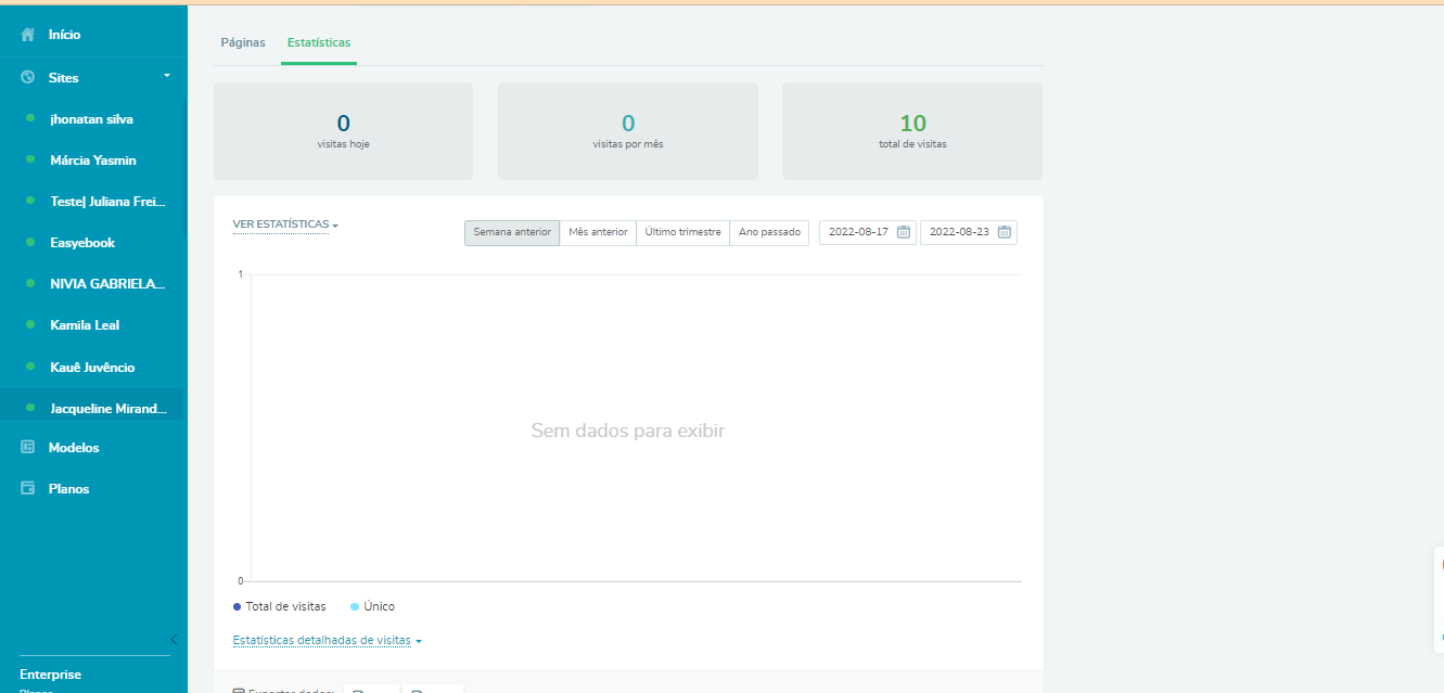 Você também pode ver as estatísticas da sua página, ou seja, o número de visualizações e cliques.