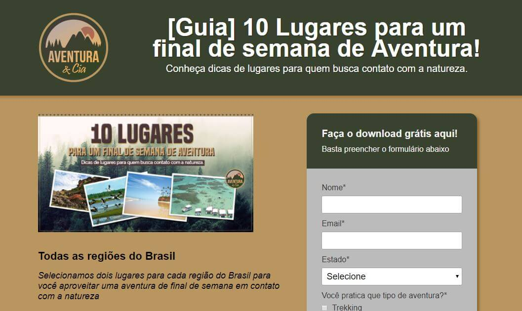 O título do seu landing page é o primeiro contato que o visitante terá com o seu negócio. Por isso, é importante que ele seja chamativo e desperte a curiosidade do visitante. Não se esqueça de incluir a palavra-chave no título, para que ele apareça corretamente nos mecanismos de busca. Como o site da imagem que oferece um guia gratuito para quem curte aventuras.