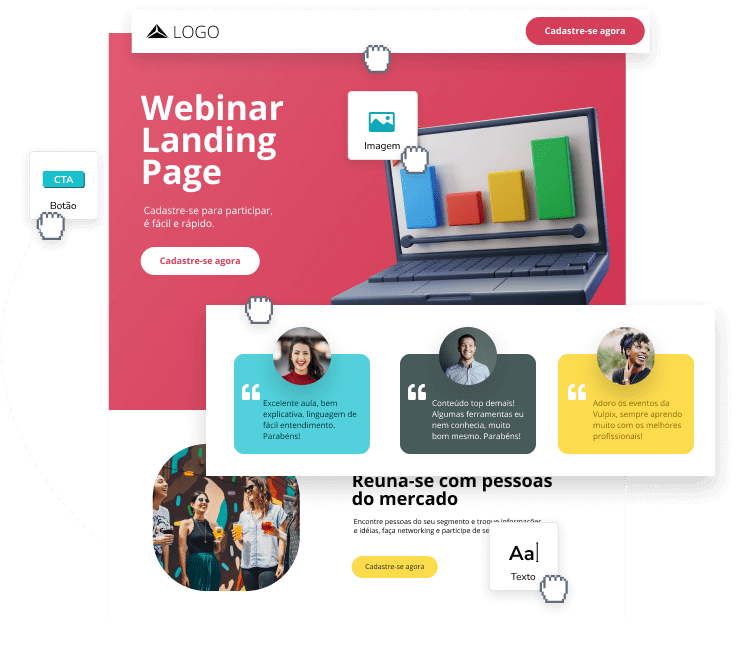 - Aumenta o engajamento. Uma landing page bem construída aumentará o engajamento dos visitantes. Ela deve ser simples e direta, com um design atraente que chame a atenção. Ela deve incluir também um call to action convincente que incite os visitantes a tomarem a ação desejada (como se inscrever em um evento, comprar um produto, entre outros).