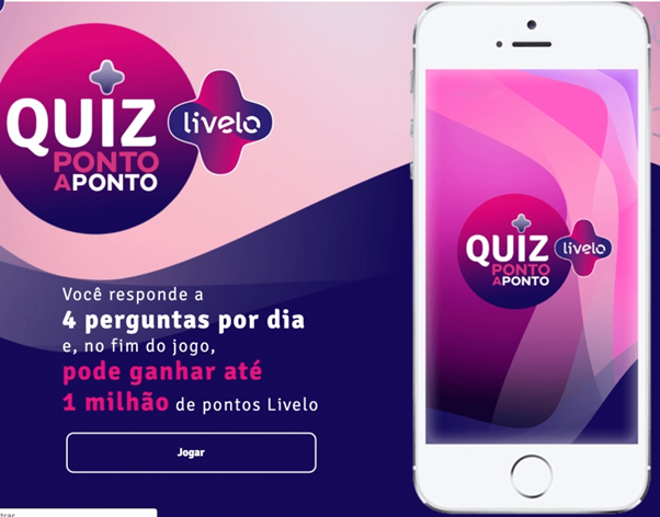 A Livelo sugere fazer um teste antes de concluir sua assinatura. Com base nos resultados, os usuários recebem a possibilidade de ganhar um prêmio. Para terminar de criar um perfil, os usuários precisam compartilhar seu endereço de e-mail.