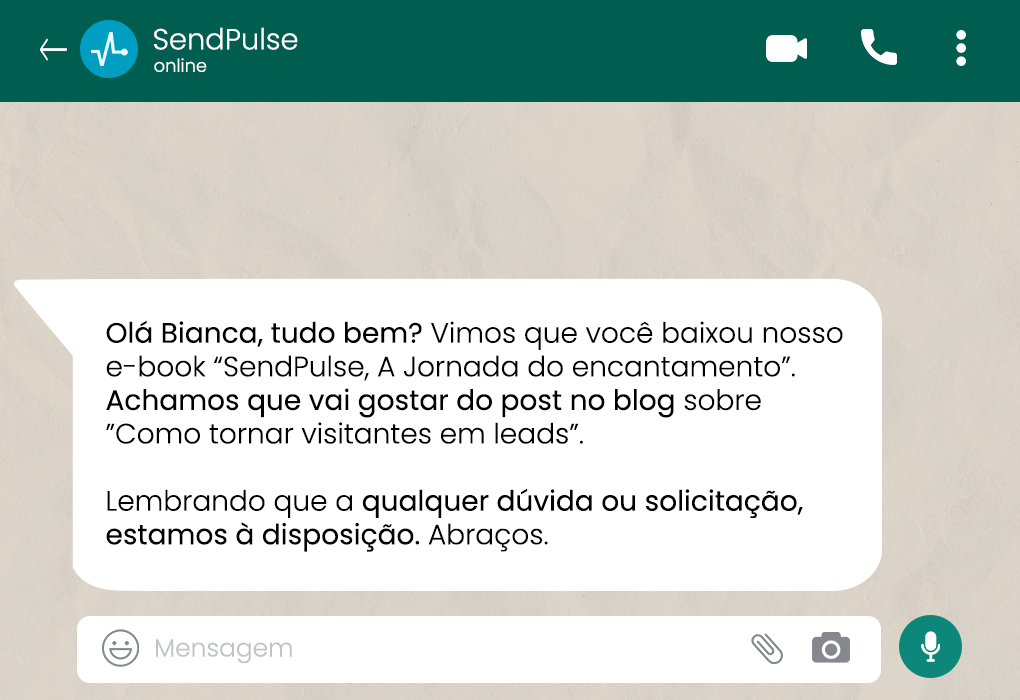 É isso! Quando terminar, adicione o formulário de inscrição com uma lead magnet ao seu site. Salve o link da SendPulse para usar o formulário para qualquer finalidade. Como é possível verificar na imagem abaixo, uma mensagem é enviada depois do preenchimento do formulário.