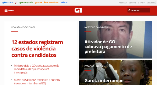 Agora vamos dar uma olhada no site oficial G1 notícias. A versão desktop e móvel do site tem a mesma aparência. Então você pode imaginar o quão difícil é navegar a partir de um smartphone.