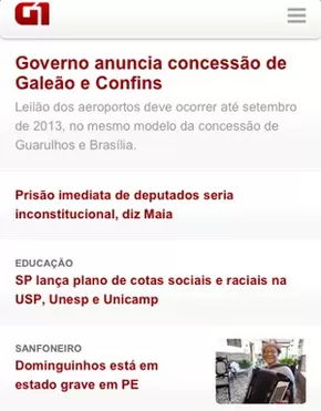 Para ver a diferença, vamos analisar a landing page do G1 para smartphones. O layout de coluna única torna muito mais fácil de usar em comparação com o site anterior.