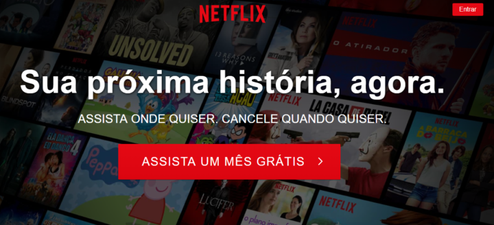 Aqui está um exemplo de botão de CTA da Netflix que é fácil de clicar e é colocado assim que acessar o site.