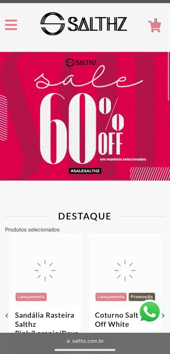 A Salthz oferece uma ampla variedade de sapatos projetados para o conforto e elegância. Você pode ver a página de destino para celular abaixo. A primeira coisa a notar é que a marca depende muito do visual e é muito marcante. Não há dúvida de que Salthz passou no teste do comprador para chamar a atenção em 50 milissegundos.