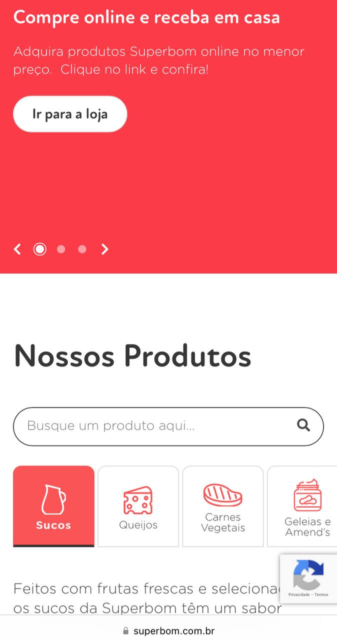 Aqui está um exemplo de uma marca que oferece alimentos veganos/vegetarianos e entrega aos clientes. Você apreciará sua página de destino que contém as informações necessárias para os compradores e é minimalista em design. Além disso, a página de destino do Superbom tem um cabeçalho curto e claro explicando o que eles oferecem.