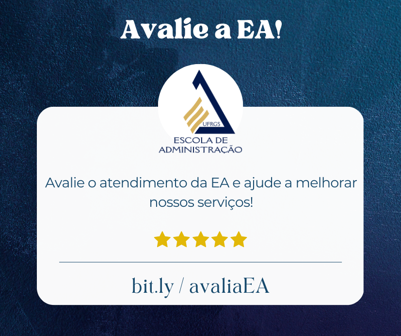 Para incentivar seu público a deixar avaliações, faça como a Escola de Administração da UFRGS e envie uma mensagem com CTA claro para levar os destinatários a avaliar seus serviços/produtos.