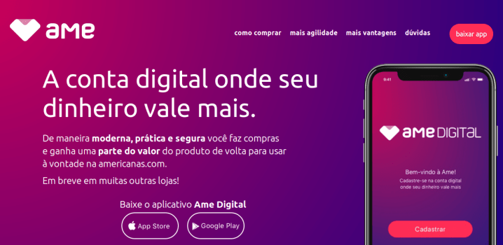 Todo mundo ama um bom desconto. No entanto, você não deve oferecê-los durante todo o ano, pois os clientes podem perder o interesse. Atualize os cupons com os códigos promocionais uma vez por mês ou seis meses. Faça-os com 15-20% de desconto. Informe os clientes sobre seus descontos por meio de e-mails que você pode criar com a ajuda do serviço SendPulse. Confira abaixo como as lojas Americanas, usou uma estratégia de criar uma conta virtual chamada Ame, onde o cliente paga suas compras por lá e ganha cashback e entre outras vantagens.