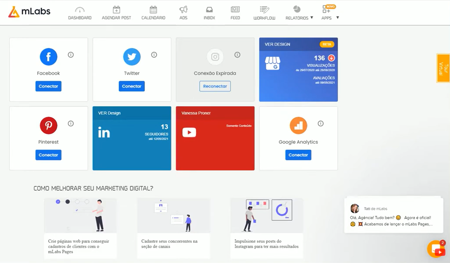 A mLabs é uma ferramenta de gestão de redes socais brasileira. Ela é uma excelente opção para ajudar seu negócio na organização, produção e análise de conteúdos para suas contas. Em um único lugar, você encontra todos os recursos para realizar as tarefas cotidianas que suas mídias sociais exigem.