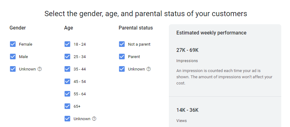 O YouTube oferece uma ampla variedade de características para você escolher ao descrever suas personas de comprador. Identifique um ou alguns segmentos de seus clientes em potencial. Em seguida, dê o nome ao público escolhido para que você possa usá-lo em suas futuras campanhas.