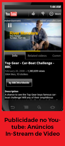 Os anunciantes podem criar anúncios de vídeo in-stream para serem exibidos antes, durante ou depois de um vídeo no YouTube. Eles são um ótimo meio para as marcas alcançarem seu público-alvo, uma vez que os usuários do YouTube são extremamente engajados com o conteúdo do site.
