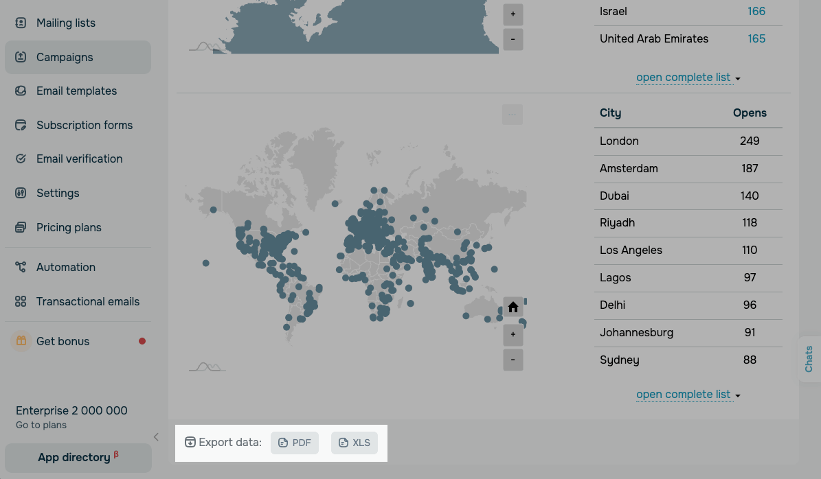 You can export this report to see which countries and cities generate the most engagement, schedule your campaigns by time zone, or segment your audience for localized follow-ups.