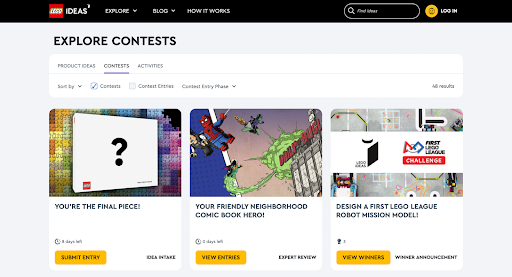 Aspecto de la página de Lego Ideas.