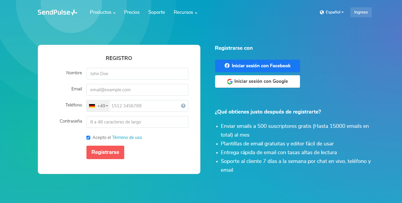 El plan gratuito permite el envío de hasta 15,000 emails a 500 suscriptores al mes, el envío de hasta 10,000 mensajes por mes a través de chatbots de Facebook Messenger, Instagram, WhatsApp o Telegram y/o el envío ilimitado de notificaciones web push a hasta 1,000 suscriptores. Y mucho más!
