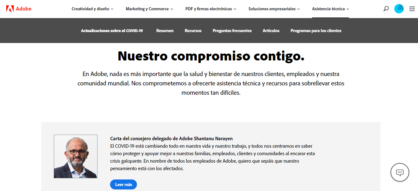 Adobe también cuenta con su propio centro de recursos para empresas afectadas, incluso categorizados especialmente por sectores para brindarles consejos más especializados.