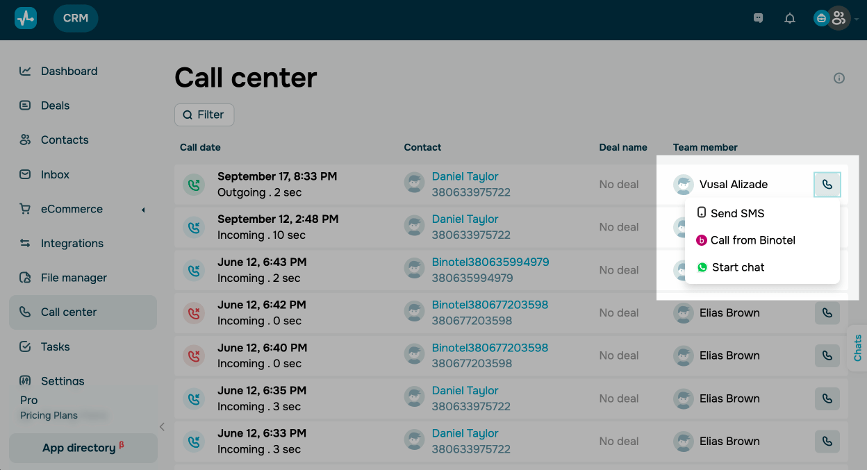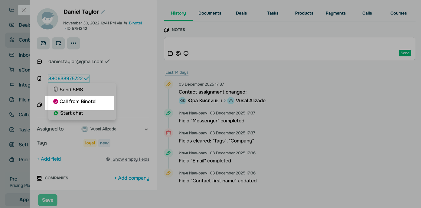 Más información: Integra Ringostat, Integra AirCall, y Conecta Binotel a tu sistema CRM.