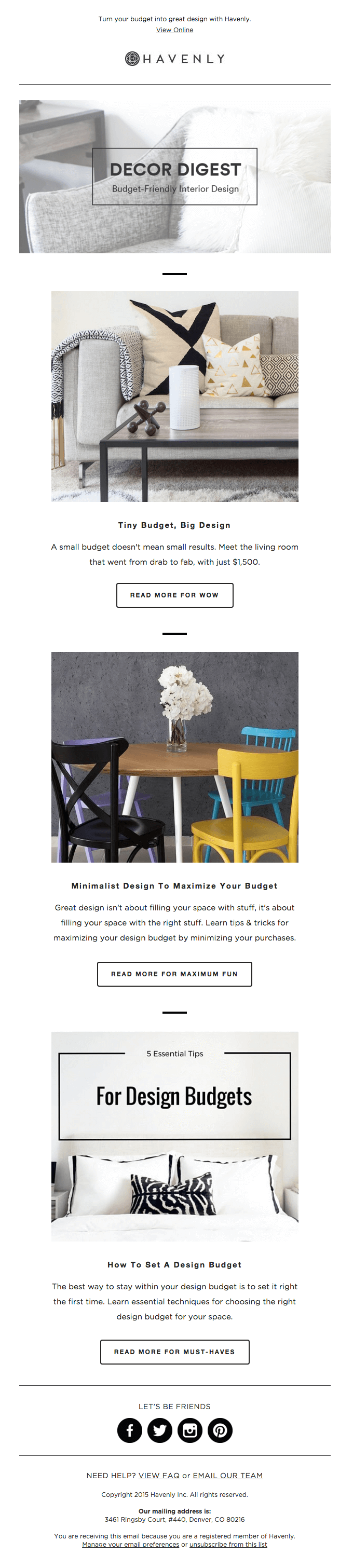 Lo anterior también aplica al email marketing. Deshazte de los textos largos, pesados y extremadamente informativos. ¿Lees a menudo correos electrónicos que contienen 10 párrafos de texto y nada más? Ponte en los zapatos de tus suscriptores.