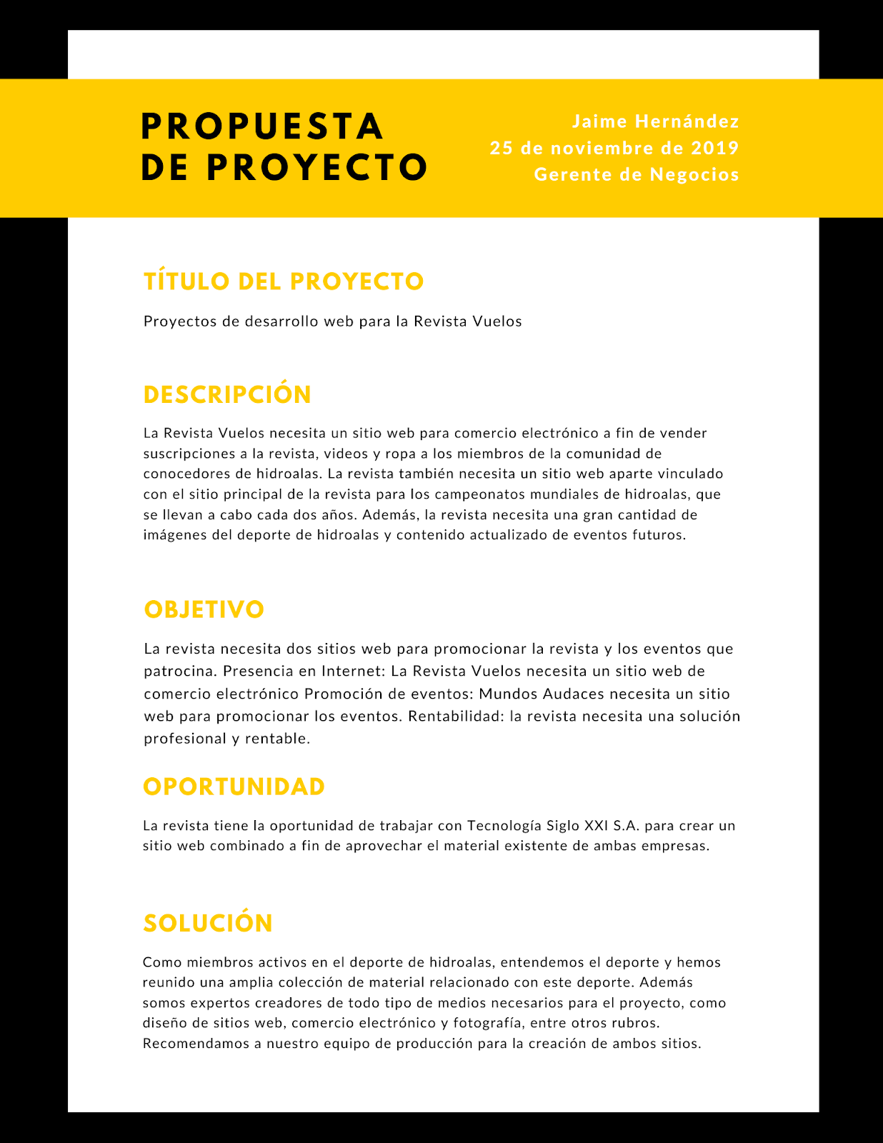 Una propuesta de negocio es un documento complejo que toda empresa debe crear. Declara la misión y propósito para aclarar lo que una empresa se esfuerza por conseguir, describiendo los pasos necesarios para alcanzar objetivos específicos ofreciendo una comprensión completa de las ventajas, características y resultados de un producto.