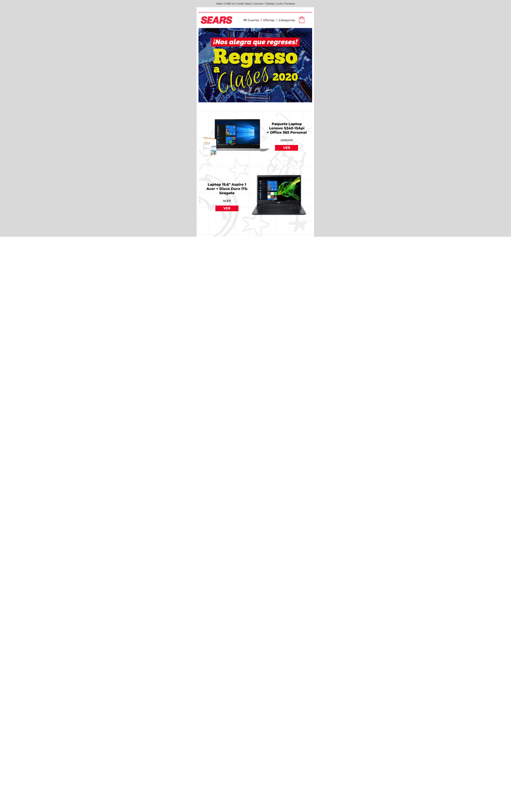 Este es un ejemplo de los boletines que envía Sears. En este caso, están preparando a sus clientes para el próximo regreso a clases y dado que fue enviado en julio de 2020 mientras aún estábamos en medio de la pandemia de COVID-19, hacen mucho énfasis en ofrecer computadoras y tablets, ya que las clases van a continuar siendo mayormente en línea en los próximos meses.