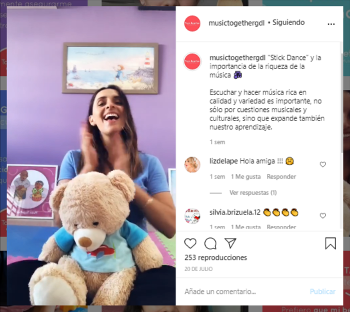 Por ejemplo, la escuela Music Together (@musictogethergdl) además de compartir los beneficios de la música para los pequeños y de responder las preguntas frecuentes que tienen los padres antes de inscribir a sus hijos, también las maestras han estado subiendo videos a Instagram constantemente para hacer pequeñas demostraciones de las clases e invitar a sus seguidores a inscribirse para una clase de prueba gratuita en su más temprana conveniencia.