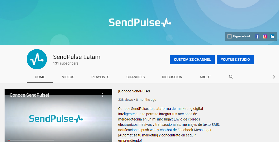 Aquí está el canal de YouTube SendPulse donde los videos se dividen en listas de reproducción. Cada lista de reproducción tiene un propósito diferente, como enseñarte cómo usar la plataforma, compartirte consejos técnicos, estrategias de marketing digital, etc.