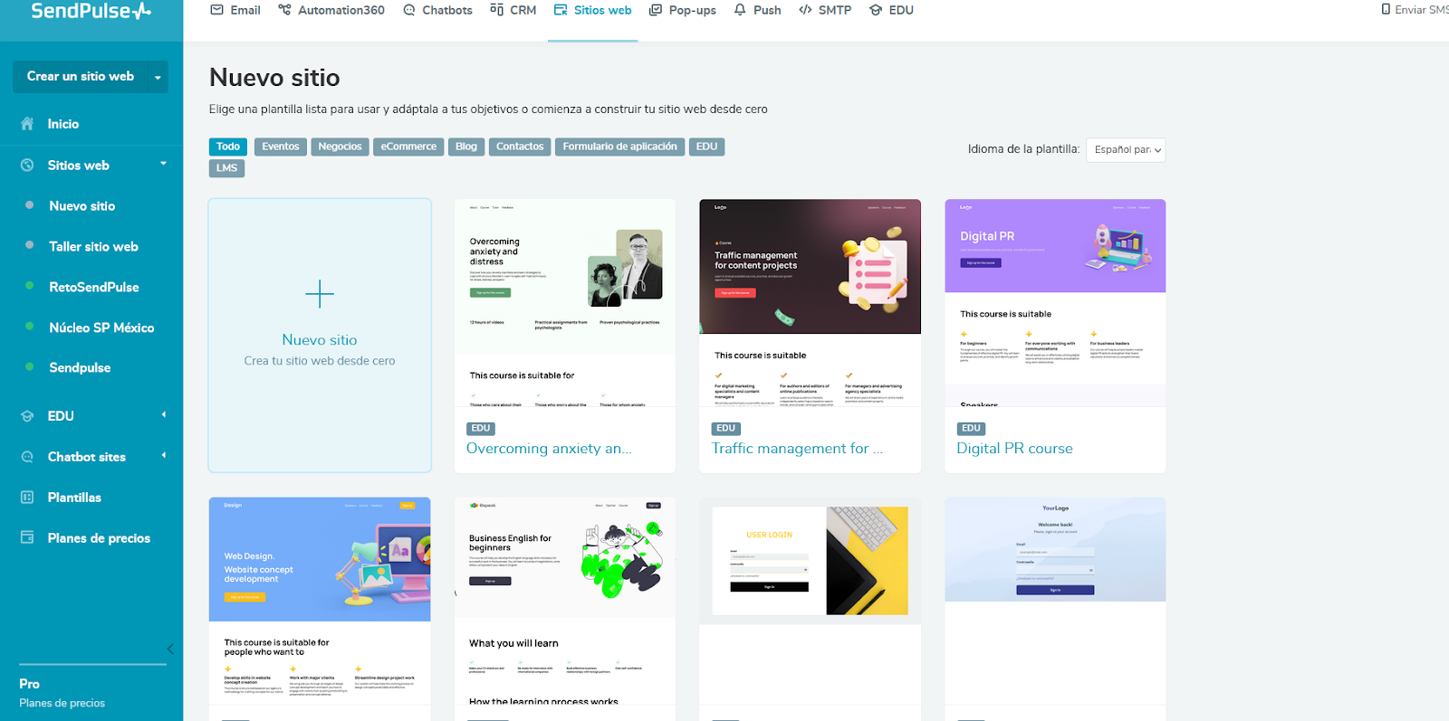 Diseña una increíble página de aterrizaje con SendPulse. Crea una tienda online o una página de enlace para su biografía en las redes sociales sin necesidad de conocimientos de codificación y de forma totalmente gratuita. Con el constructor de arrastrar y soltar fácil y rápido de usar. Añade widgets de suscripción y botones con enlaces a tus chatbots, intégralo con un sistema de pago y controla las estadísticas con la ayuda de informes. Visita nuestra Base de conocimientos para obtener más información.