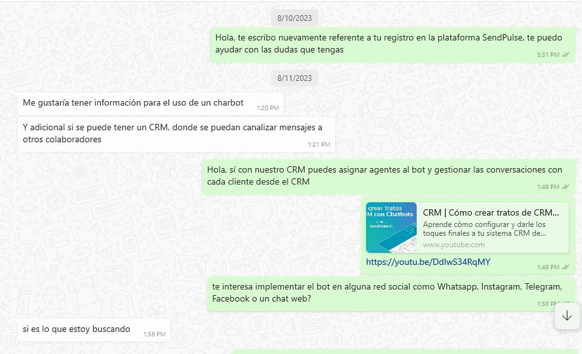 En la siguiente imagen se puede ver al equipo de ventas de SendPulse ayudando a un cliente a resolver todas sus dudas sobre los productos de la plataforma.