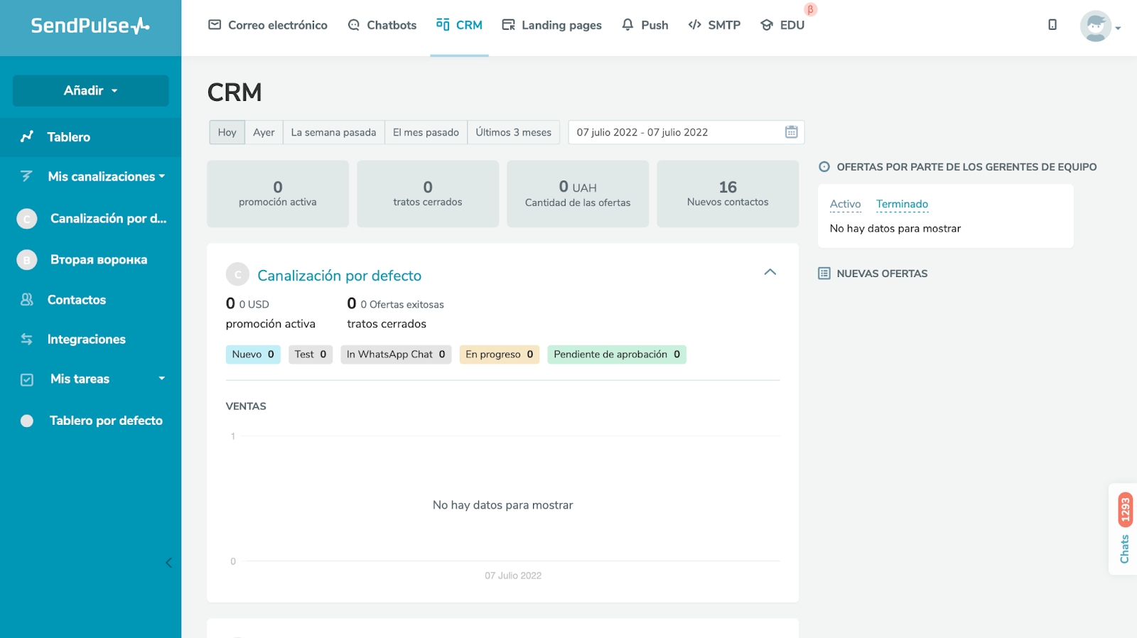 Además de la Automatización 360, también se puede utilizar de manera independiente el CRM de SendPulse para llevar un control de las actividades que realicen los colaboradores en tienda física y vendedores. De esta manera, se estará supervisando que las comunicaciones se encuentren completamente armonizadas.