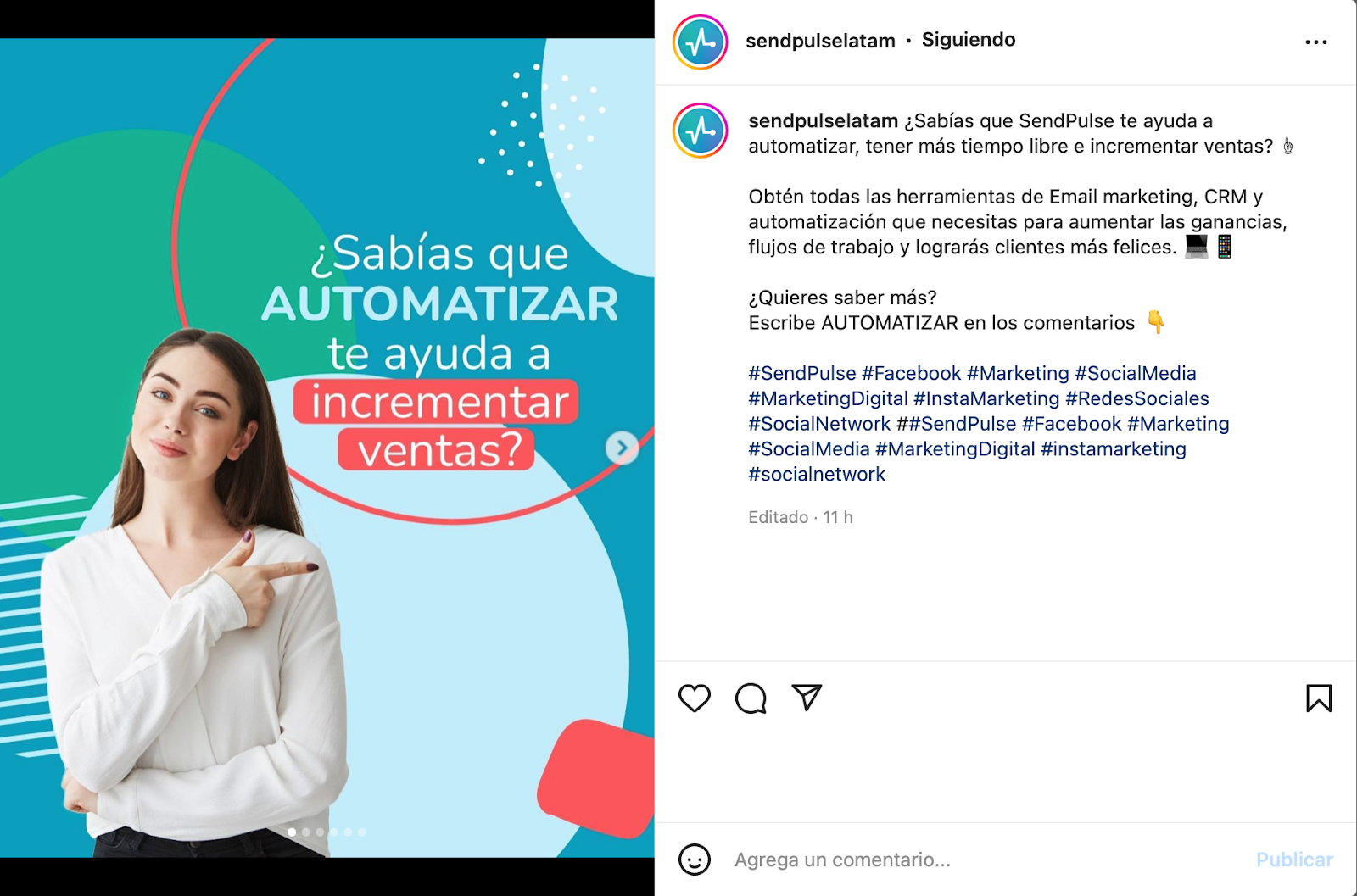 Recuerda que puedes utilizar la plataforma de SendPulse con más de 8 canales de comunicación y con las herramientas necesarias para crear flujos automatizados y estrategias completas.