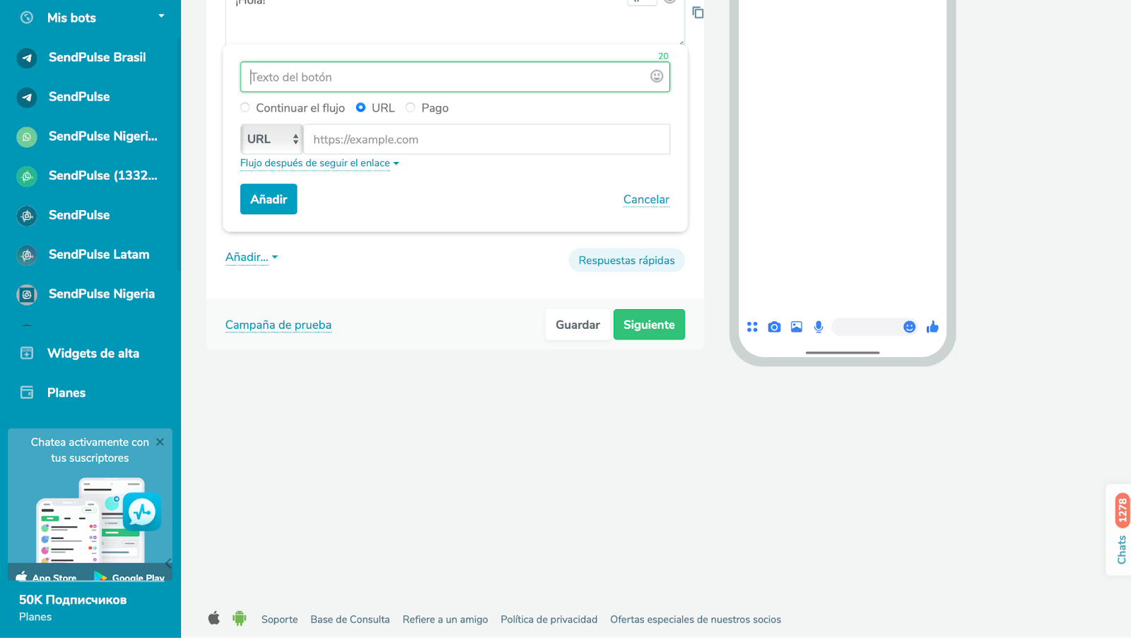 También puedes enlazar la campaña con un flujo de chatbot automatizado para que estos reciban los mensajes que se acompañan del flujo.
