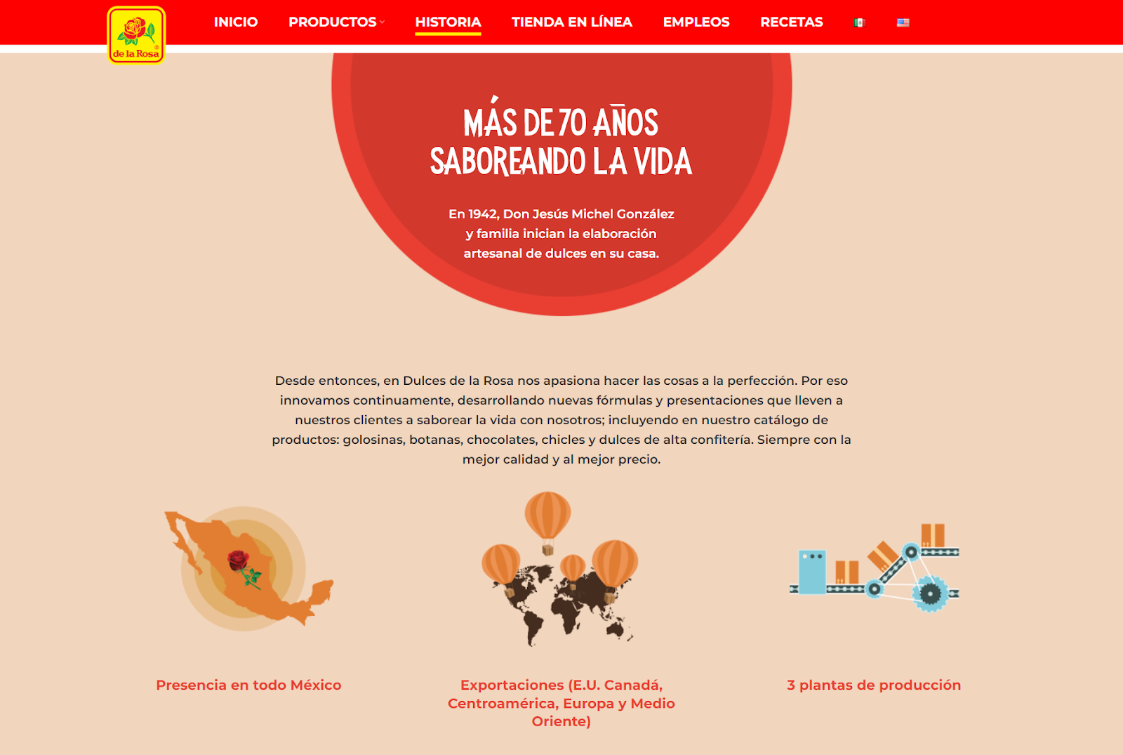 Un excelente ejemplo es De la Rosa, una de las empresas más reconocidas de dulces en México, con presencia en Estados Unidos, e incluso en Medio Oriente. Esta marca siempre se mantiene cerca a su historia familiar y artesanal y lo comunica en sus relaciones públicas.