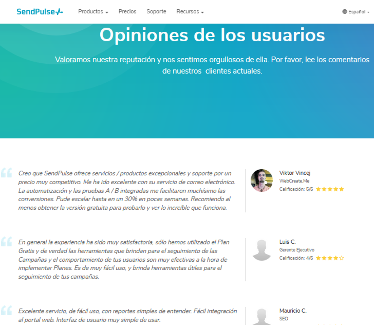 No hay nada mejor que un cliente satisfecho dejando una opinión positiva para conseguir la compra de un cliente indeciso. De esta forma, los clientes potenciales podrán ver que tus productos funcionan y les dará confianza comprar en tu empresa. Puedes incluir los testimonios en cualquier lado como en blogs, folletos publicitarios, páginas de inicio, redes sociales y más.