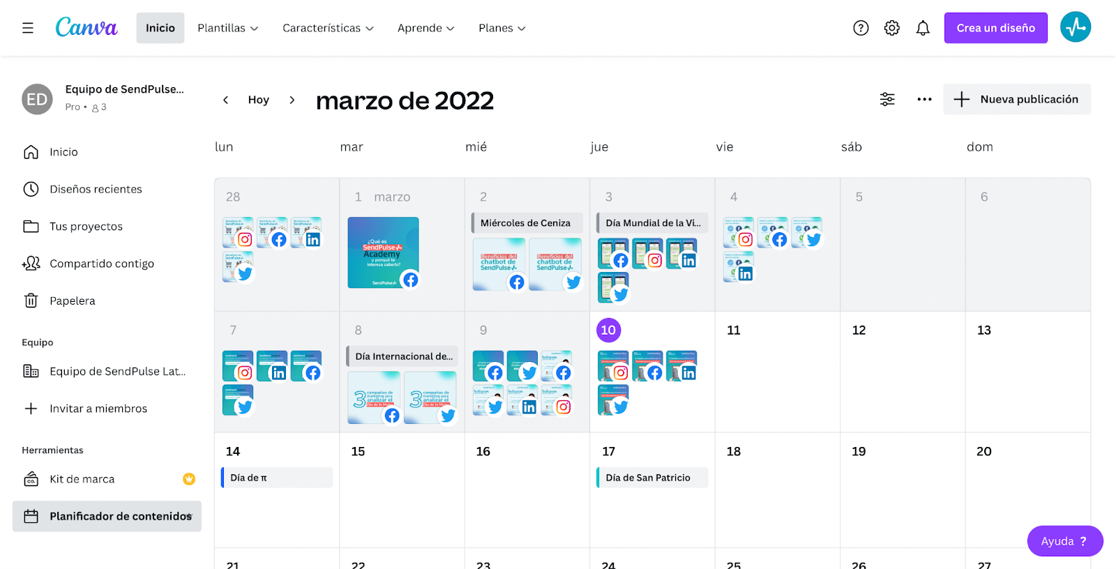 Canva en realidad es una herramienta especializada en diseño. Su uso no está enfocado 100% al manejo de redes sociales; sin embargo, en los últimos años ha implementado ciertas herramientas que hacen más fácil la gestión puesto que se pueden crear piezas de contenido, programarlas y editarlas desde la plataforma. Sin embargo, tiene muchas limitaciones ya que no se pueden conocer estadísticas del rendimiento de las publicaciones desde la plataforma.