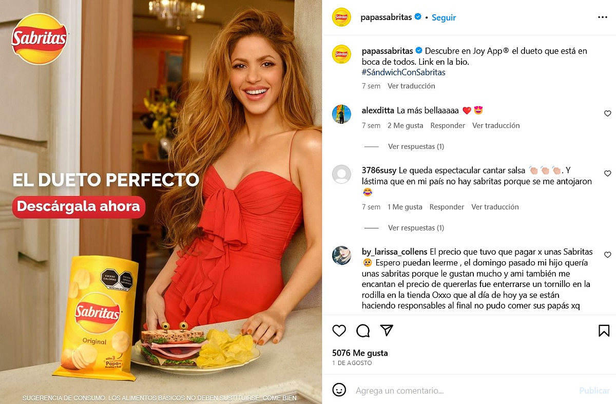 La asociación entre Shakira, cantante e influencer, y Sabritas, una marca de papas, es un excelente ejemplo.