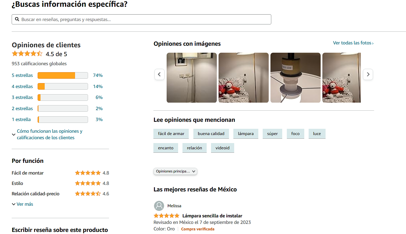 De hecho, nueve de cada diez clientes leen opiniones antes de comprar algo. Por lo tanto, una marca debe tener una buena reputación y clientes satisfechos. Por lo tanto, deja que tus clientes se dejen influenciar por las buenas opiniones, no por las malas. Considera la posibilidad de añadir reseñas en las landing pages de las características de tus productos o debajo de tus fichas de producto para asegurarte de que los visitantes las verán.